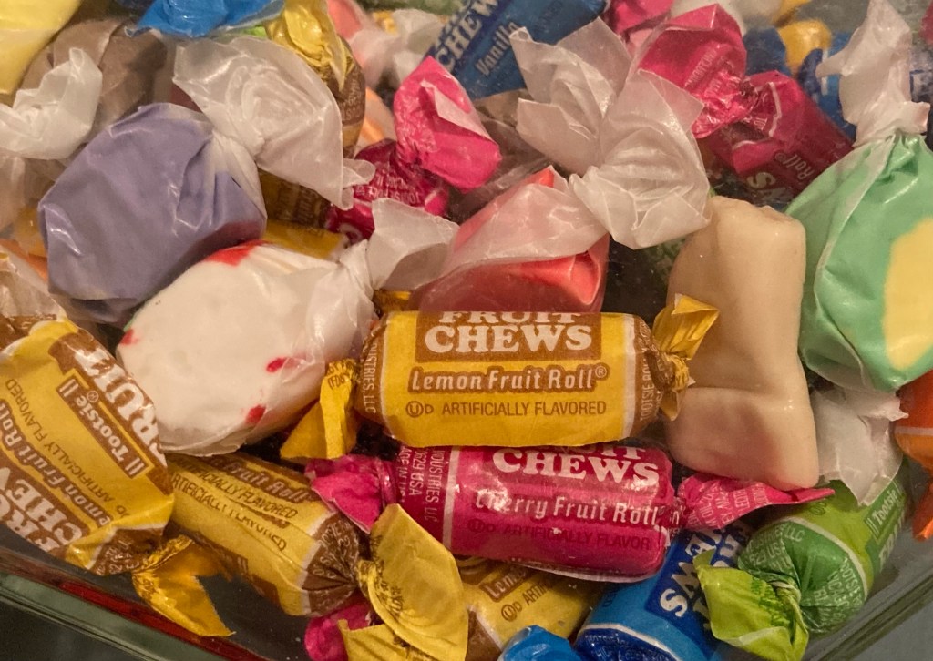 Society is like this bunch of candies. All different flavors and packaging. Some of us covered by the blessings of our God. It is up to us to preach of his love and faithfulness. So those that are weak and naked may have the opportunity to be clothed in his redemption and love.